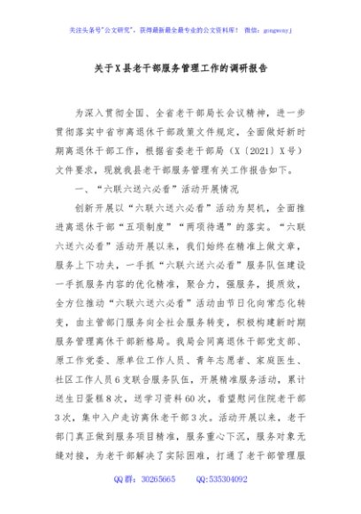 / 关于X县老干部服务管理工作的调研报告