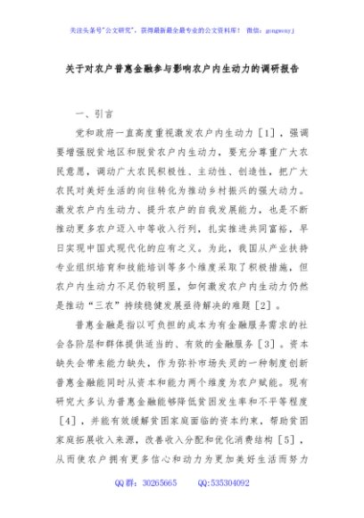 / 关于对农户普惠金融参与影响农户内生动力的调研报告