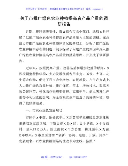 / 市推广绿色农业种植提高农产品产量的调研报告