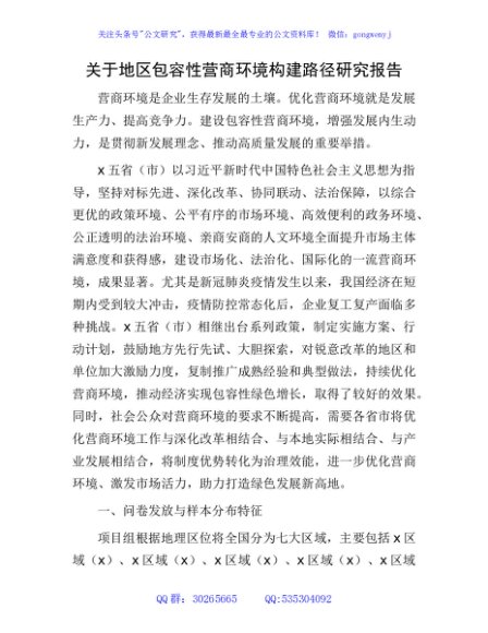 / 地区包容性营商环境构建路径研究报告(调研报告)