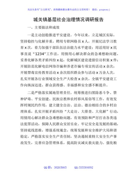 / 城关镇基层社会治理情况调研报告