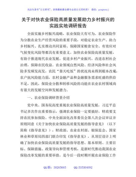 / 对快农业保险高质量发展助力乡村振兴的实践实地调研报告