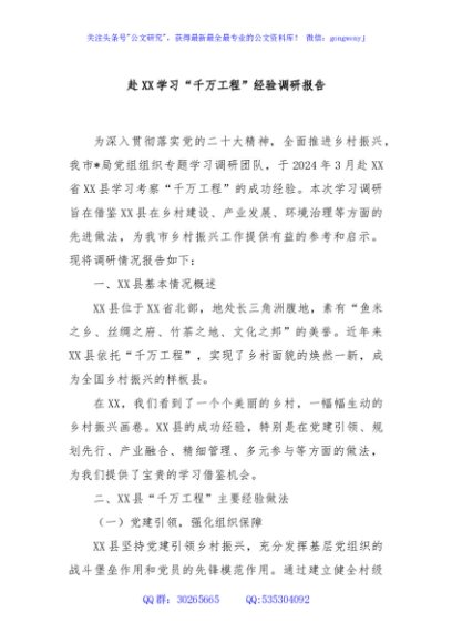 / 赴XX学习“千万工程”经验调研报告