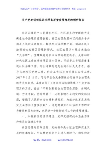 / 关于党建引领社区治理高质量发展情况的调研报告