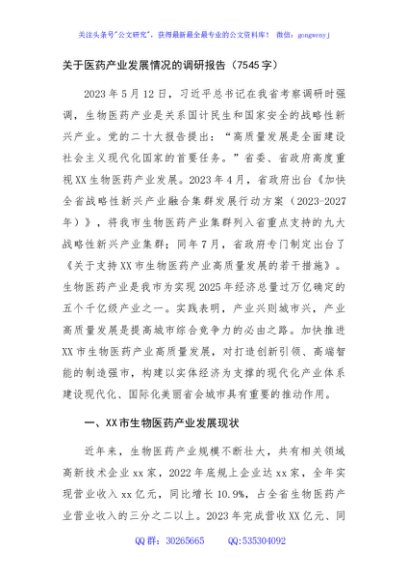 / 关于医药产业发展情况的调研报告