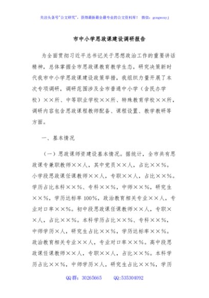 / 市中小学思政课建设调研报告