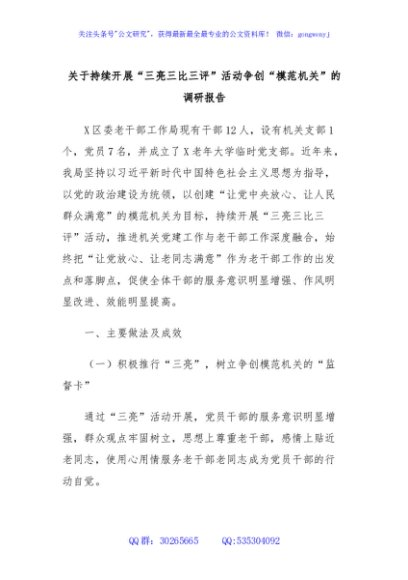 / 关于持续开展“三亮三比三评”活动争创“模范机关”的调研报告