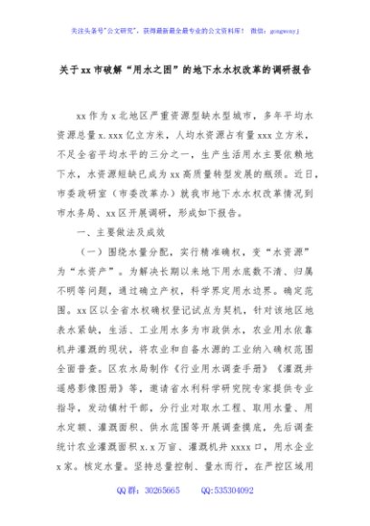 / 关于xx市破解“用水之困”的地下水水权改革的调研报告
