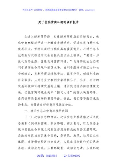 / 关于优化营商环境的调研报告