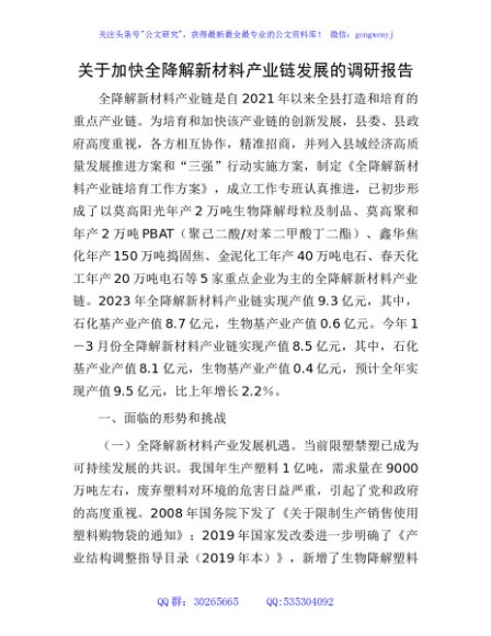 / 加快全降解新材料产业链发展的调研报告