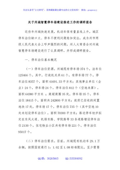 / 关于州城智慧停车场建设推进工作的调研报告