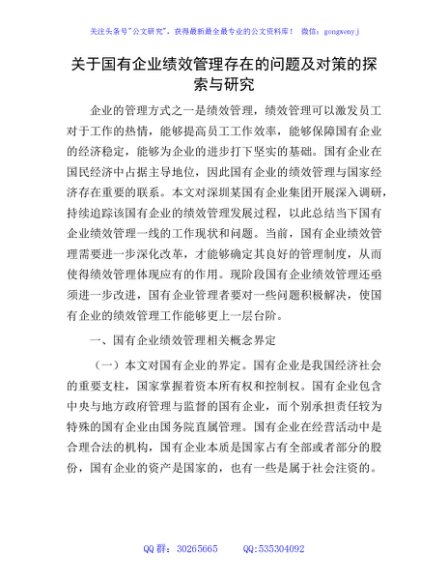 国企公司绩效管理存在的问题及对策的探索与研究(调研报告)