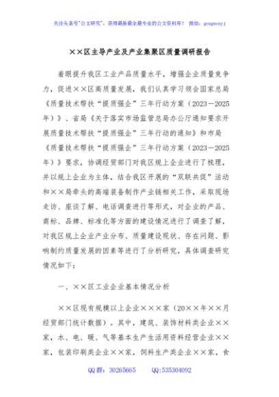 / ××区主导产业及产业集聚区质量调研报告
