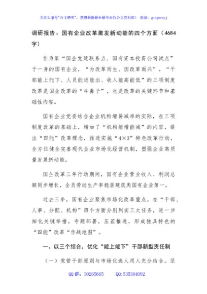/ 调研报告:国企改革激发新动能的四个方面