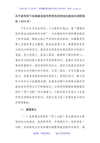 / 关于新形势下加强基层宣传思想系统党组织建设的调研报告