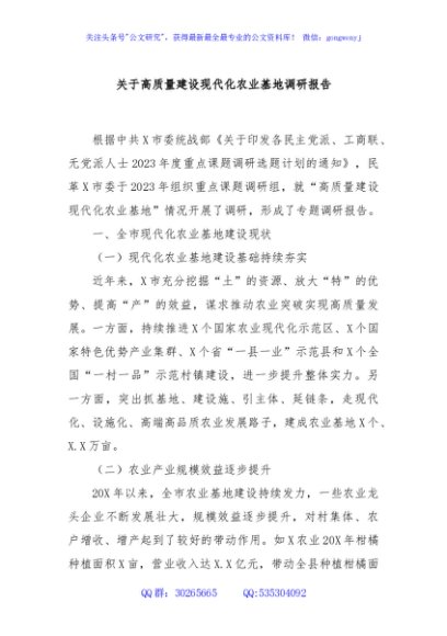 / 关于高质量建设现代化农业基地调研报告