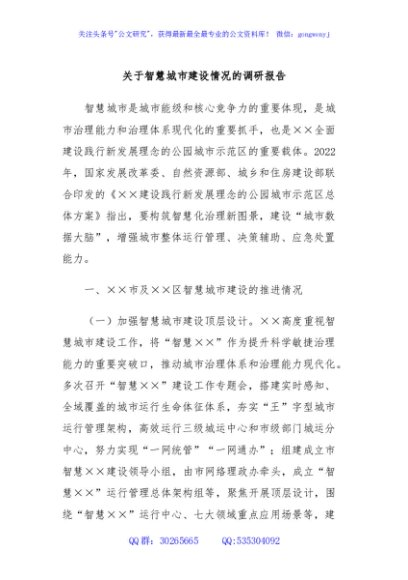 / 关于智慧城市建设情况的调研报告