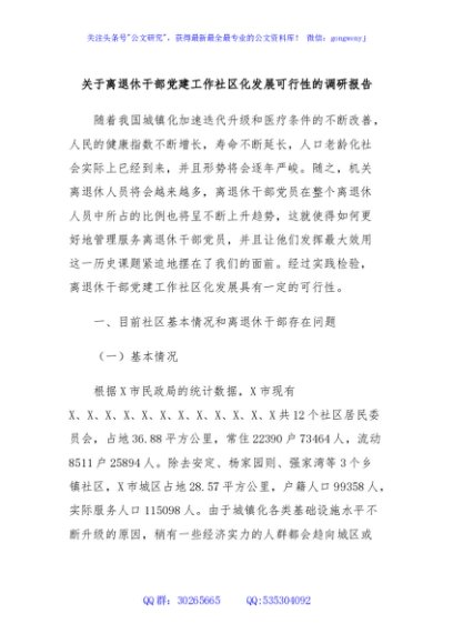 / 关于离退休干部党建工作社区化发展可行性的调研报告