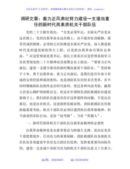 / 调研报告:着力正风肃纪努力建设一支堪当重任的新时代高素质机关干部队伍
