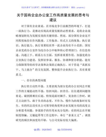 / 国企公司办公室工作高质量发展的思考与建议(调研报告)