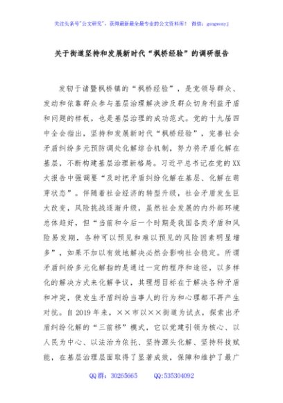 / 关于街道坚持和发展新时代“枫桥经验”的调研报告