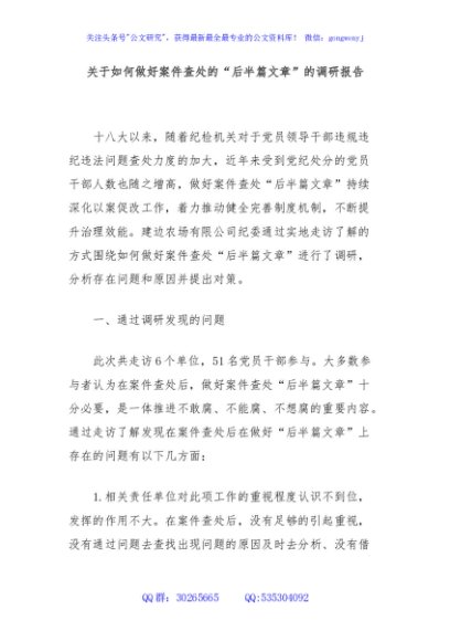 / 关于如何做好案件查处的“后半篇文章”的调研报告