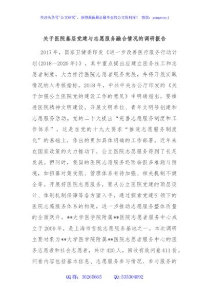 / 关于医院基层党建与志愿服务融合情况的调研报告