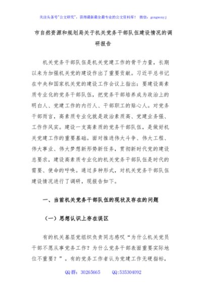 / 市自然资源和规划局关于机关党务干部队伍建设情况的调研报告