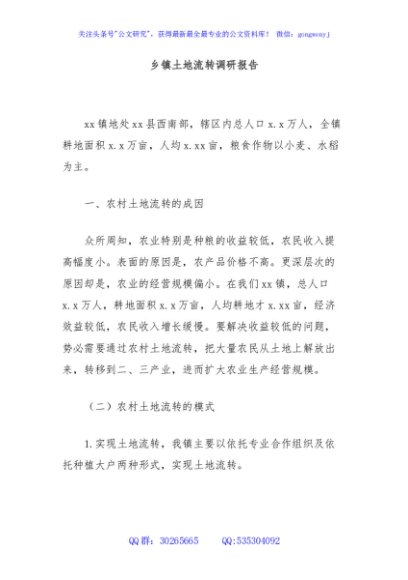 / 乡镇土地流转调研报告