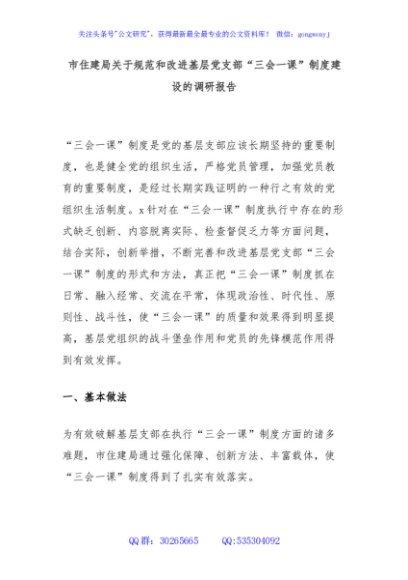 / 市住建局关于规范和改进基层党支部“三会一课”制度建设的调研报告