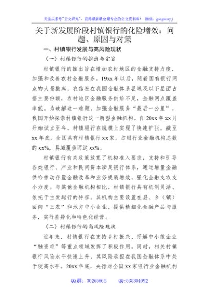 / 关于新发展阶段村镇银行的化险增效:问题、原因与对策(调研报告参考)