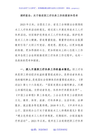 / 调研报告:关于推进职工疗休养工作的探索和思考