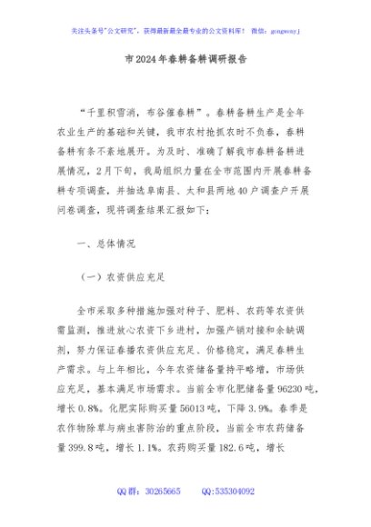 / 市2024年春耕备耕调研报告