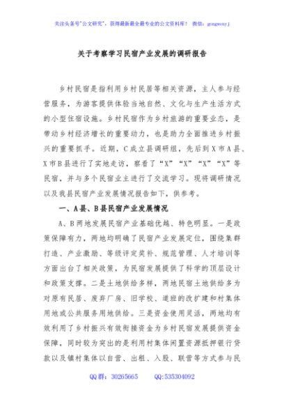 / 关于考察学习民宿产业发展的调研报告