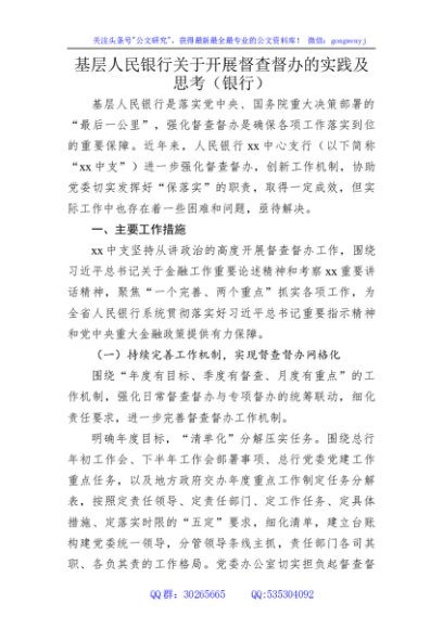 / 基层人民银行关于开展督查督办的实践及思考(调研报告参考)
