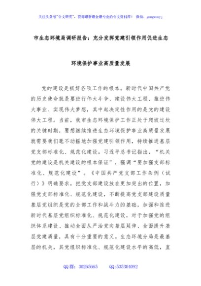 / 市生态环境局调研报告:充分发挥党建引领作用促进生态环境保护事业高质量发展
