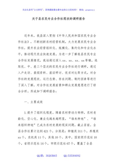/ 关于县农民专业合作社现状的调研报告