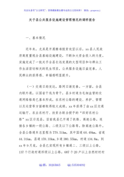 / 关于县公共服务设施建设管理情况的调研报告