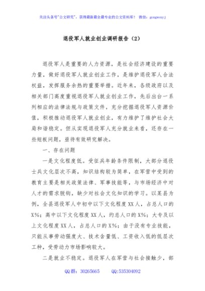 / 退役军人就业创业调研报告(2)