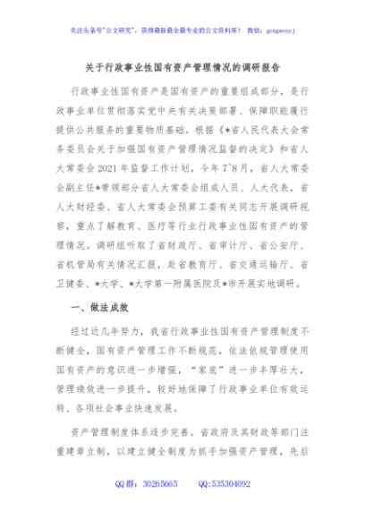 / 关于行政事业性国有资产管理情况的调研报告