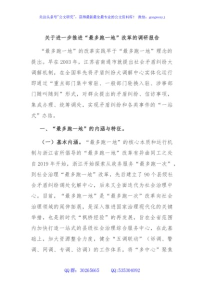 / 关于进一步推进“最多跑一地”改革的调研报告