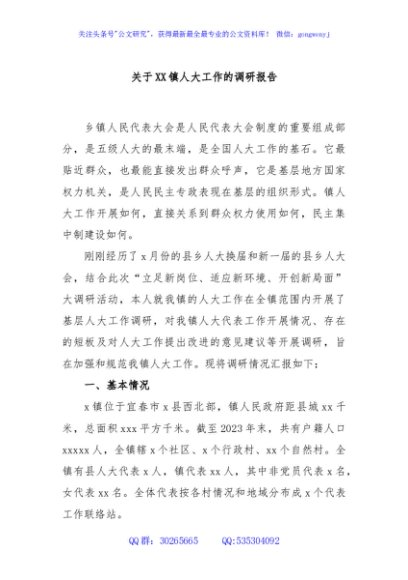 / 关于XX镇人大工作的调研报告