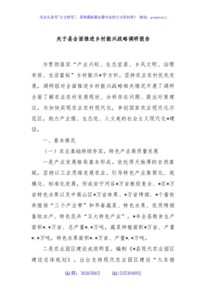 / 关于县全面推进乡村振兴战略调研报告