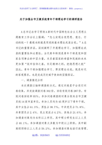 / 关于加强全市卫健系统青年干部理论学习的调研报告