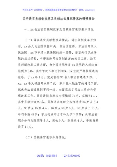 / 关于法官员额制改革及员额法官履职情况的调研报告