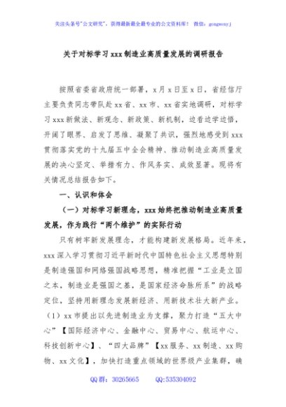 / 关于对标学习xxx制造业高质量发展的调研报告