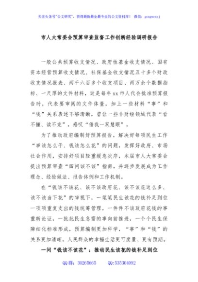 / 市人大常委会预算审查监督工作创新经验调研报告