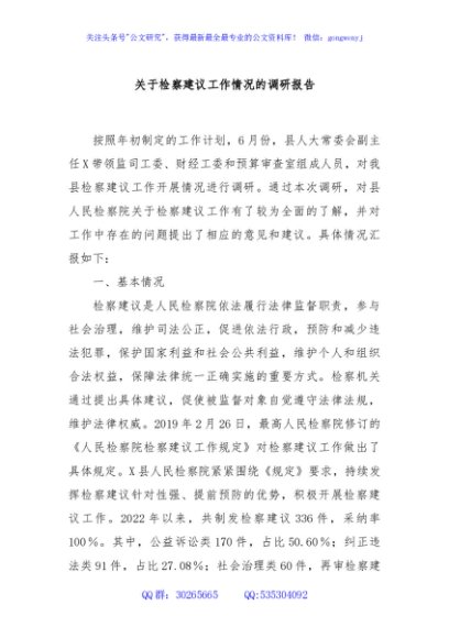 / 关于检察建议工作情况的调研报告