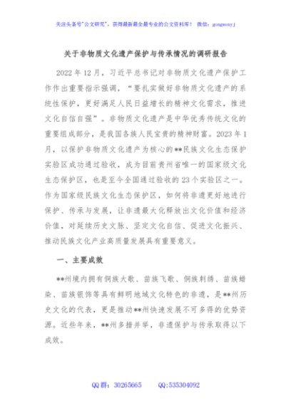 / 关于非物质文化遗产保护与传承情况的调研报告