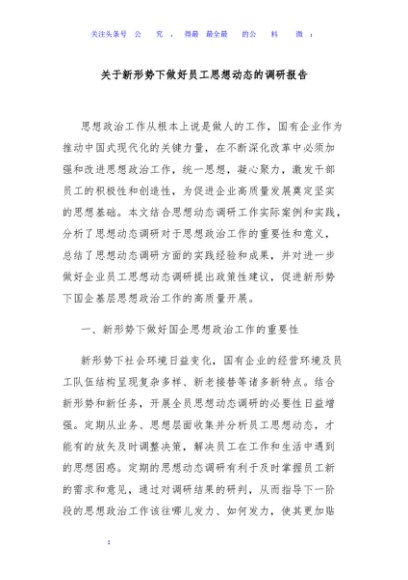/ 关于新形势下做好员工思想动态的调研报告
